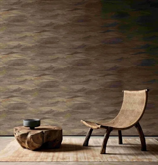 The Wallpaper of the Year, Samsara is a mysterious and intense composure of textural terrain-like layered lines. With pigments obtained from mud, tea leaf and natural dyes, and crushed with gouache wash and metallic gold leaf, it echoes the profound and overflowing beauty of soil.