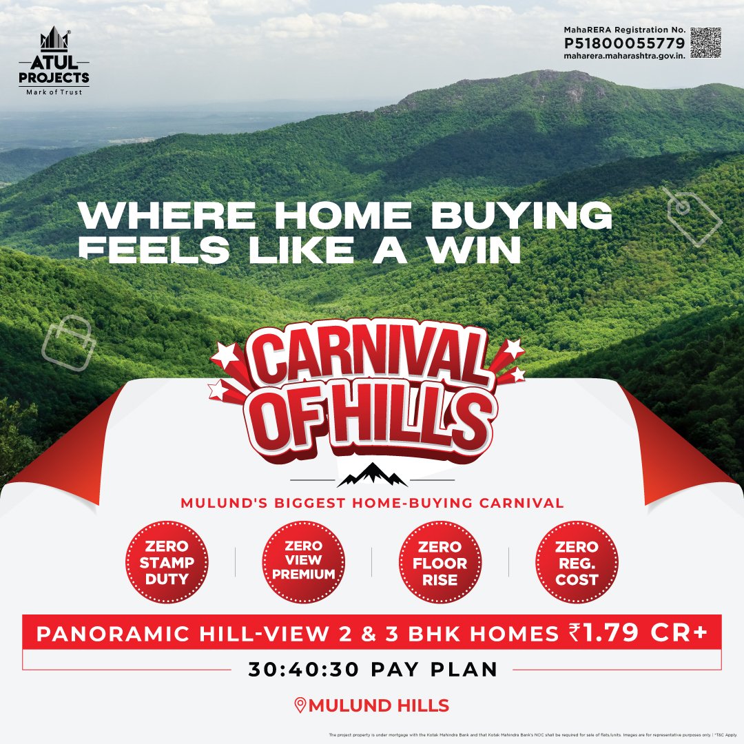 According to Piyush Niljikar, Head of Marketing, Atul Projects, “The Carnival of Hills has been set up as a high-impact buying opportunity, creating greater accessibility to premium hill view living. By creating exclusive buying opportunities and matching it with premium inventory we have created conditions for low barriers to entry and strong buying momentum, giving buyers clear motivation to act today.”