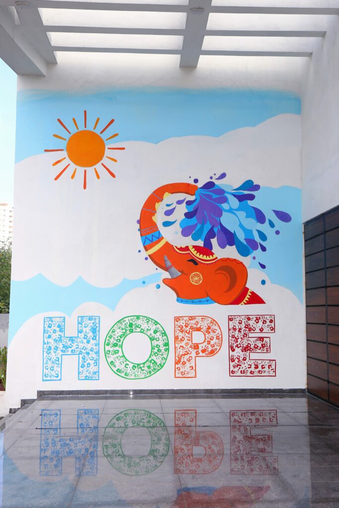 CapitaLand Hope School in India was built over 18 months through a collective effort of 20 CapitaLand staff volunteers. CapitaLand staff from ITPB provided their real estate expertise to Karnataka Education Department including designing and managing the development of the school. Staff volunteers teamed up with the children and added finishing touches to a āHope Wallā with painted handprints. Specially designed by Indian contemporary artist Ms Nicoline Rodrigues, the wall was unveiled at a ceremony for the handover of the school on 2 October 2021.