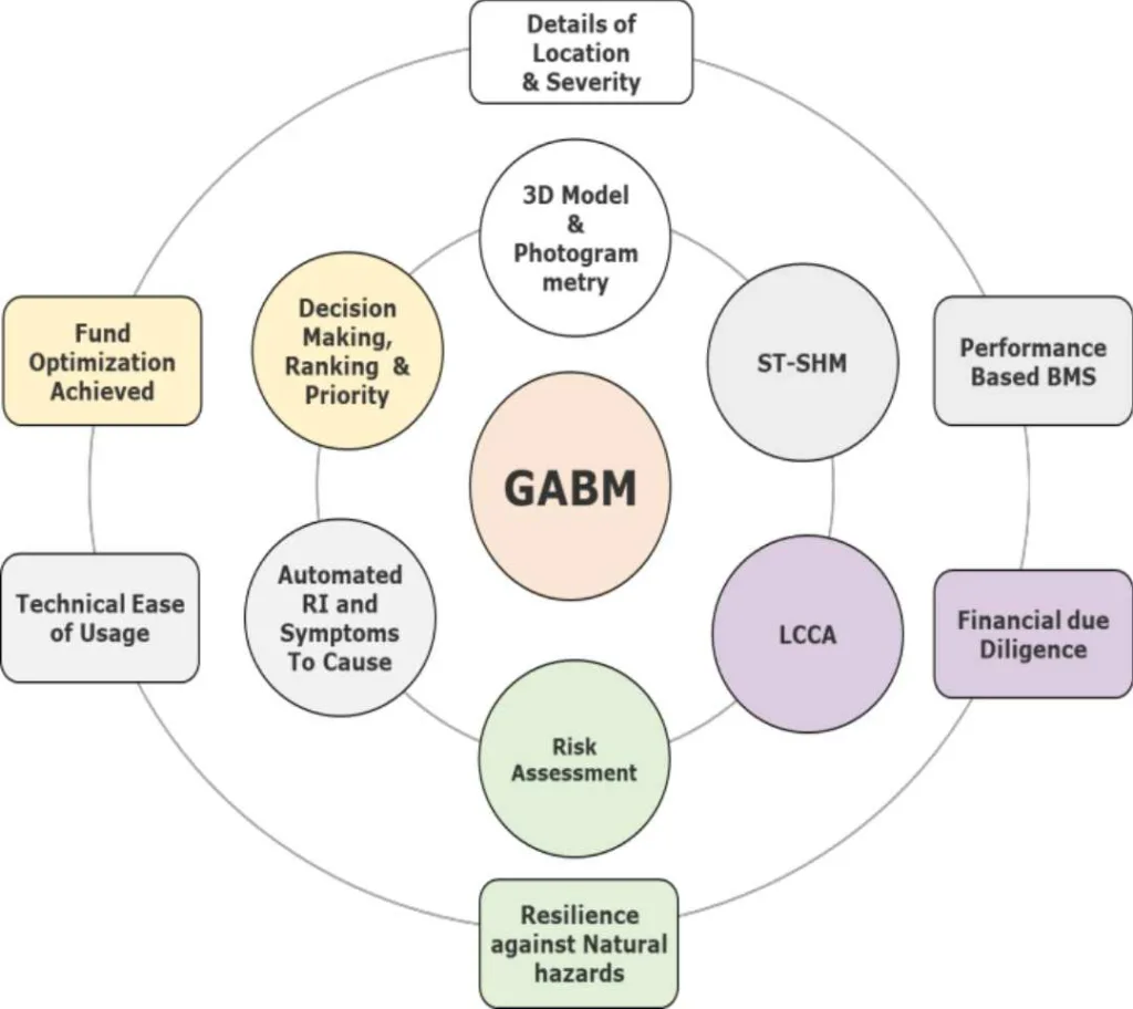 GABM is a bridge management analytics software used for the lifecycle management of bridges by ensuring the safety of bridges and providing priority protocols for remedial interventions. It leverages advanced algorithms to comprehend deterioration mechanisms, evaluate consequences, identify hazard types, compile historical data, and quantify vulnerability factors.