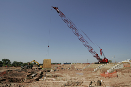 The latest models of crawler cranes with lattice boom ensure that they can hoist heavy loads. The undercarriage with wheels, on the other hand, provides the required mobility, enabling it to move quickly and easily from site to site. The boom is erected at the site. The cranes have also been designed with energy-saving assist systems known as the “G-modes”, which can achieve savings in fuel consumption. The “G-modes” include the auto idle stop system, energy-saving winch control system, and the engine RPM limitation system. Other features of the new series include a compact structure allowing for greatly improved transportability, a larger cab design, an LMI touch screen, a counterweight detection device, an improved counterweight self-installation mechanism, and newly improved (short) control levers. The crane boom is typically raised or lowered by wire rope mechanisms. These types of crawler cranes are suitable for long-term jobs that require extensive, vertical reaches, such as bridge building, general construction, shaft excavation, steel erection, pile driving and caissons.