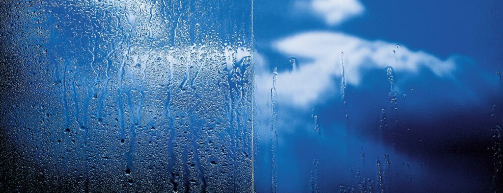 Self-cleaning glass is a specific type of glass with a surface that keeps itself free of dirt and grime. The field of self-cleaning coatings on glass is divided into two categories: hydrophobic and hydrophilic. These two types of coating both clean themselves through the action of water, the former by rolling droplets and the latter by sheeting water that carries away dirt. Hydrophilic coatings based on titania (titanium dioxide), however, have an additional property: they can chemically break down absorbed dirt in sunlight.