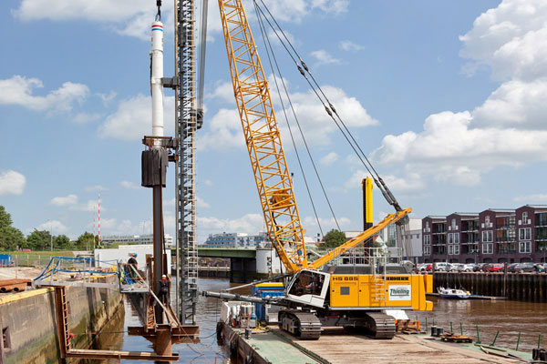 Pile driving equipment is designed to align and hold piles in the correct position and to drive the piles into the ground. Equipment of this type can also be used for extracting piles from the ground. Pile-driving equipment includes a weight-lifting device and a driver, which is usually mounted on a pile driver or on a truck, tractor, railroad platform, excavator, or crane hoist. Pile-driving equipment is classified according to the principle used in operating the driver as striking, vibratory, or jacking. It is designed to align and hold piles in the correct position and to drive the piles into the ground. Equipment of this type can also be used for extracting piles from the ground. Pile-driving equipment includes a weight-lifting device and a driver, which is usually mounted on a pile driver or on a truck, tractor, railroad platform, excavator, or crane hoist. Pile-driving equipment is classified according to the principle used in operating the driver as striking, vibratory, or jacking.