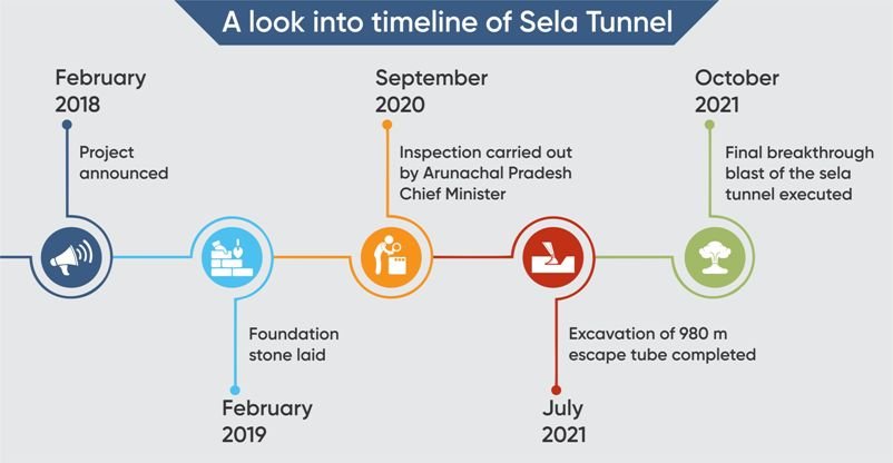 The Sela Tunnel project is estimated to cost Rs 687 crore and covers a total distance of 12.04 kilometres and consists of two tunnels of 1790 metres and 475 metres each. It has reached its final stages of construction. The tunnel, constructed by the Border Roads Organisation (BRO) under Project Vartak, holds strategic importance as it will enhance the Indian military’s capabilities in combating the threat of China’s Western Theater Command, opposite India’s eastern sector of Line of Actual Control.