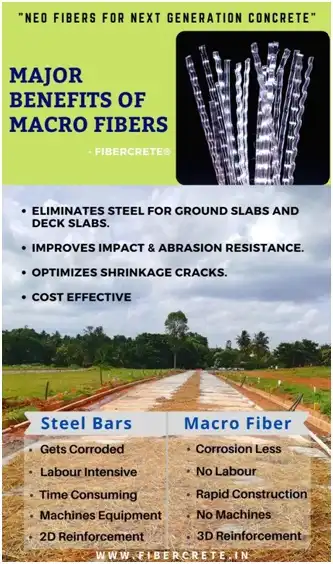 Synthetic Fibers play a vital role in the design and construction of Ground Supported Slabs, Mezzanine Deck Slabs, Precast Concrete, PQC Roads, Industrial Flooring, Tunnell Lining, Shotcrete and a wide range of other applications.