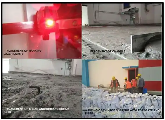 We followed floor designing from TR 34 3rd edition, ACI360 01 10, ACI 302, BS8204, ACI 548 1R 09, ACI 224 1R-93. At the design stage we shared every details for the system to the client and consultant for HSSGM (High Strength Structural grade mortar) and Synthetic floor details, like –