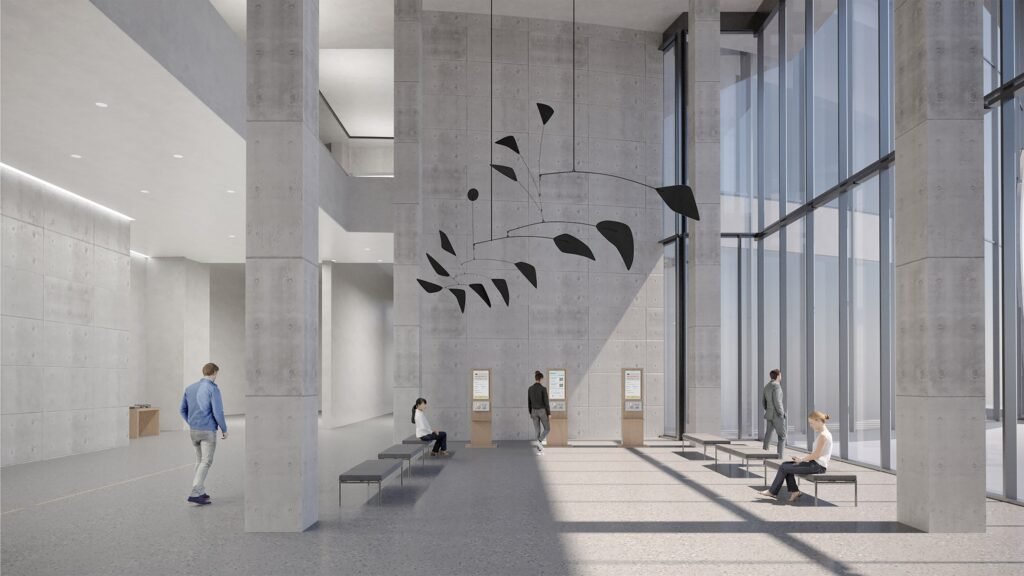 - Concrete walls: Ando’s signature concrete surfaces create uniform backgrounds for exhibitions, providing visual consistency across the museum.
