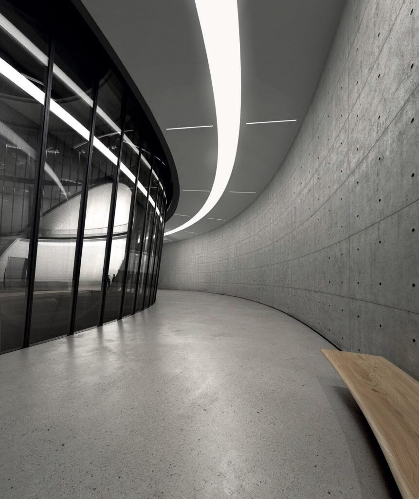 The interconnection of these forms allows for fluid movement between different sections of the museum. Ando has stated that the use of pure geometric forms is intended to “return to the origins of thought” and create a space from which ideas can radiate outward. The design also emphasizes continuity between spaces and encourages visitors to explore different areas while maintaining visual and spatial connections.