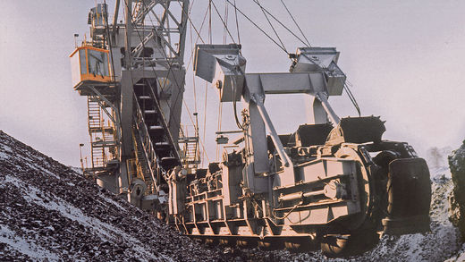 A bucket chain excavator (BCE) is a piece of heavy equipment used in surface mining and dredging. BCEs use buckets on a revolving chain to remove large quantities of material. They are similar to bucket-wheel excavators and trenchers. Bucket wheel excavators remove material from below their plane of movement, which is useful if the pit floor is unstable or underwater. Modern bucket chain excavators can be customized designed to client’s requirements and incorporate various solutions according to their specific application. There is a wide range of machines with capacities up to 14,500 m³/h, which can work in high and deep cut operations and with varying depths and heights. This equipment works using a series of buckets to dig into the material before dumping it in the bucket chute and depositing it through a discharge boom. The primary difference is that the buckets are mounted on a flexible chain similar to a chainsaw blade rather than on a rigid wheel. BCEs are used primarily to excavate material below the vehicle’s superstructure while bucket wheel excavators focus primarily on excavating topsoil overburden and/or resources.