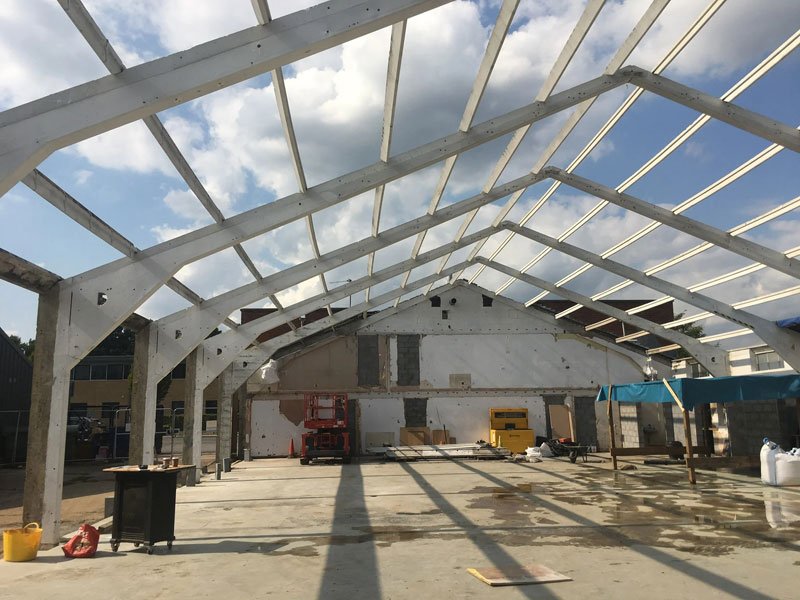 Portal frames are generally low-rise structures, comprising columns and horizontal or pitched rafters, connected by moment-resisting connections. Resistance to lateral and vertical actions is provided by the rigidity of the connections and the bending stiffness of the members, which is increased by a suitable haunch or deepening of the rafter sections. This form of continuous frame structure is stable in its plane and provides a clear span that is unobstructed by bracing.