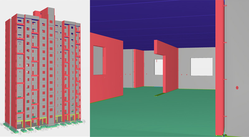 - Load bearing wall frame for gravity and lateral load resistance for wind and earthquake forces. System includes load bearing walls and prestressed solid slabs. Structural walls at the perimeter act also as facade for the buildings, the facades will be painted for finishing.