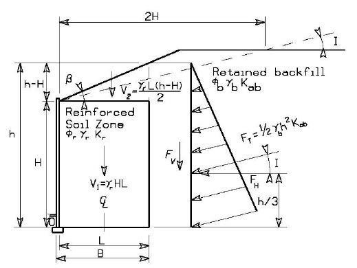 For sloping backfill or broken backfill case, active earth pressure is calculated using coulomb theory: