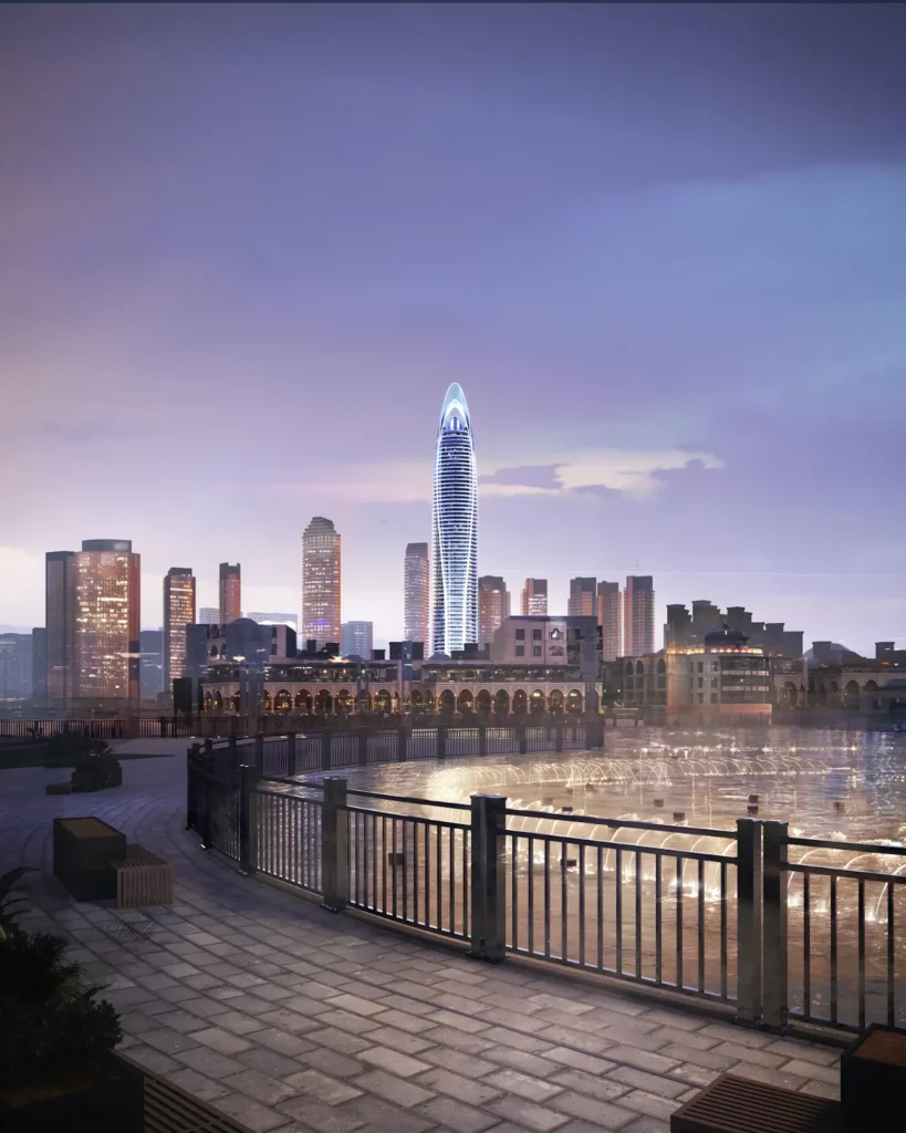The tower stands near two of Dubai’s most significant landmarks—the Burj Khalifa and Dubai Mall. Its structural system is based on a reinforced concrete core surrounded by a steel frame. This arrangement handles vertical loads while resisting lateral wind and seismic forces. The structural approach enables wide, open-plan layouts and uninterrupted interior configurations.