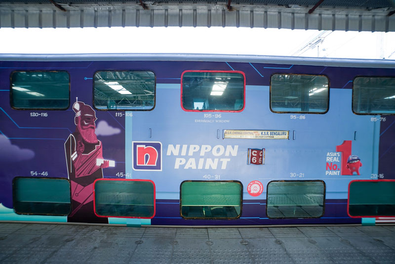 Mahesh Anand, President, Nippon Paint (Decorative) India said, “We are happy to partner with Southern Railways for this very special project to beautify the double decker train. The theme has come out really well and highlights the important landmarks of both cities – Chennai and Bengaluru along with our favourite blobbies. Through all these artworks, we are taking the passengers on Nippon Paint’s brand journey – we have highlighted Nippon Paint’s USPs like eco-friendliness, international Japanese technology and unique product offerings. It is wonderful to see these beautified trains receiving a lot of love from passengers, many of whom are seen taking selfies inside and outside the compartments.”