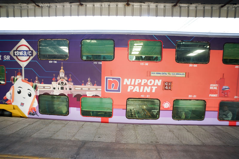 Nippon Paint, Asia’s leading paint manufacturer in partnership with Southern Railway, today announced that they have beautified SBC Double Decker Express which will ply between Chennai and Bengaluru. Each of the eight compartments are wrapped with artworks spotlighting key landmarks of Chennai and Bengaluru and serve as a reminder of the rich cultural fabric of both cities.