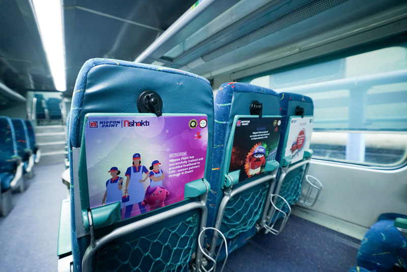 The artworks in the compartment’s interiors take the passengers on a tour of Nippon Paint India’s brand journey – from being the first manufacturing company in India to receive both GreenCo and Green Pro certification to the advanced features of Nippon Paint’s products and Nippon paint’s nshakti initiative for women painters. All through the artworks in the compartment’s exteriors, Nippon Paint’s brand mascot ‘Blobby’ is portrayed in various avatars in a train journey; from an idli seller on a train to a station master. Passengers will also be able to catch a glimpse of the all-time favourite CSK blobby and the recently launched RCB blobby.