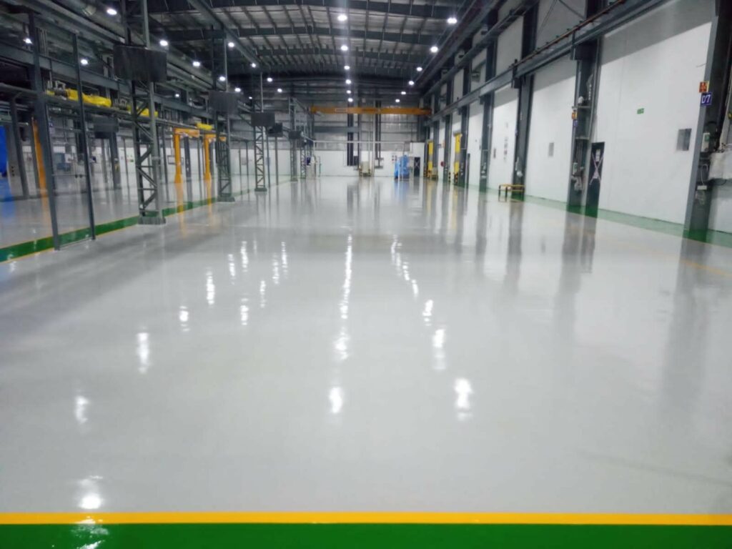 Polished concrete floor industrial application is well established and widely accepted. It serves to provide a durable smooth surface, capable of withstanding static and dynamic loads, suitable for many different industrial facilities. However, it may not provide many performance attributes such as jointless, seamless surface, chemical resistance, smooth movement of trolleys and forklifts and torques associated with rotating machinery and may not completely prevent dust generation.