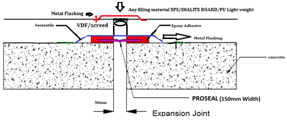 - EPOXY ADHESIVE is applied to the prepared substrate on both the sides of the joint so that both sides of the PROSEAL are embedded into the