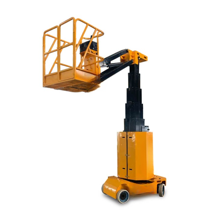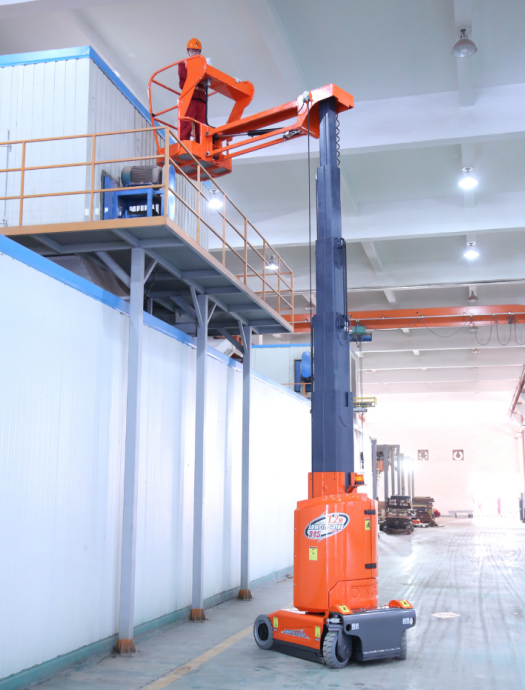 A vertical mast lift is a type of aerial work platform (AWP) built for vertical elevation. Unlike articulated or telescopic boom lifts, vertical mast lifts operate on a single vertical mast column with a work platform mounted on a track system. Some models come with a small jib arm for outreach, allowing limited horizontal movement. These machines are powered by battery or electric motors, which makes them suitable for indoor use where noise and emissions need to be minimized.