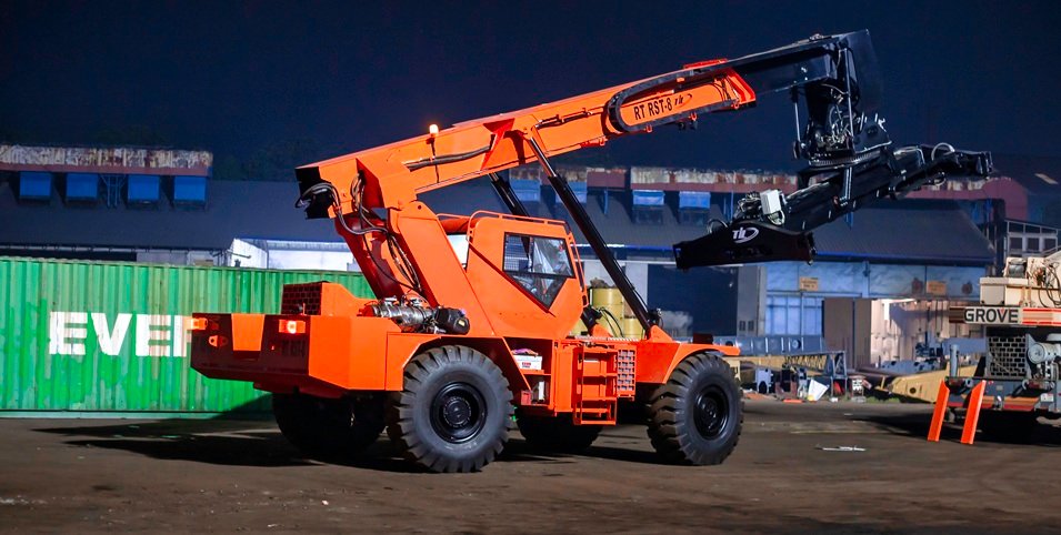 The RT RST-8 is the world’s first rough terrain empty container reachstacker, and it was developed specifically for Indian operating conditions. Many container yards, logistics hubs, and mining-linked facilities operate on unpaved or uneven surfaces where conventional imported reachstackers struggle. The RT RST-8, with its 4×4 drive and 4-wheel steering, delivers superior performance, safety, and efficiency in these challenging environments. It fills a critical domestic gap and also has strong export potential in terrain-challenged markets globally.
