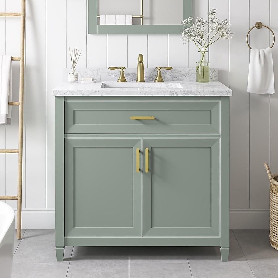 Allen + Roth Lancashire 36-inch sage green vanity with cultured marble top